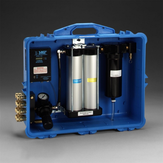 This panel is a four outlet panel that filters and monitors carbon monoxide (CO). It has numerous features that add to worker protection. It is packaged in a protective carrying case for total portability. This four stage air purification system includes an adjustable regulator and gauge. For maximum efficiency of the panel, the temperature of the compressed air should be 68 to 150(deg)F (20 to 65(deg)C) and the relative humidity of the compressed air should be greater than 20% and less than 70%. Used in applications such as painting, asbestos abatement, petroleum industries, pharmaceuticals, chemical handling and metal grinding.