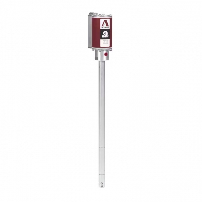 - Alemite Stationary RAM Pump, Model No.: 9950-C1; Drum Size: 20 kg; Outlet: 3/8" NPTF(f); Pump Ratio 50:1; Delivery: 4.5 lb/ min; Weight: 49 lb