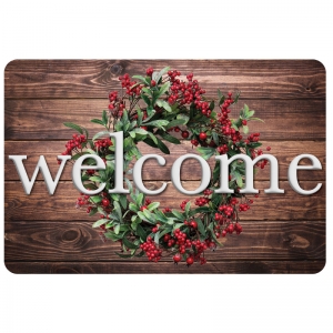 The Original Fun Mat, Welcome Mat, 15.5" x 23.5", Winter Berries Wreath Rustic Wood Welcome $ 14.36