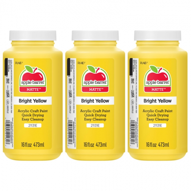 Acrylic Paint Matte, 16oz., Bright Yellow, Pack of 3