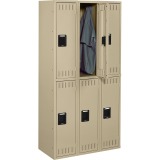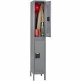 - Durable 3-wide, double-tier locker with doors has a 2-point locking mechanism for security